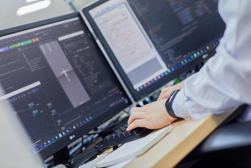 その他にも、業務改善を目指して便利そうな新しいツールを持ってきても、使い勝手が悪かったりデータ形式が以前と違ったりして誰も使わないまま終わってしまうということもあると思います。その時に、何で使えなかったかを噛み砕いて分析し、会社にフィットさせていくということも私の役目です。3DCGを扱う上では、コンピューターグラフィクスという名前の通りコンピュータの技術・知識・プログラミング方面と創造・表現・デザイン方面を融合させて表現を制作する必要があります。幸い自分はグラフィックもコンピューターもその方面のスペシャリストとお話ができる程度の知識があり、橋渡し的な役割を担えるので、そんな自分しか解消できないであろう問題に取り組む時には大きなやりがいを感じます。
